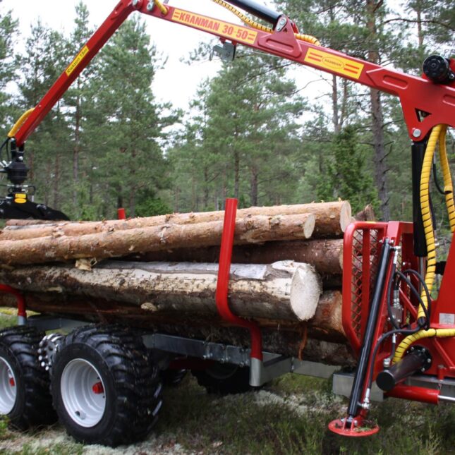 Kranman 30-50 is a smooth and light crane that requires little oil flow. The price includes the grapple, rotator and 5-lever valve package. Gate and support legs are added to the price.