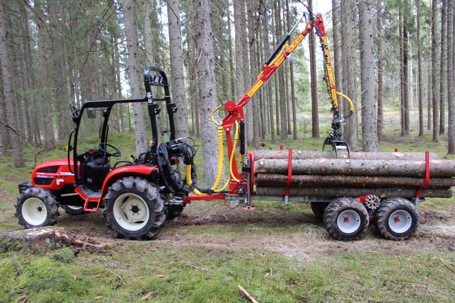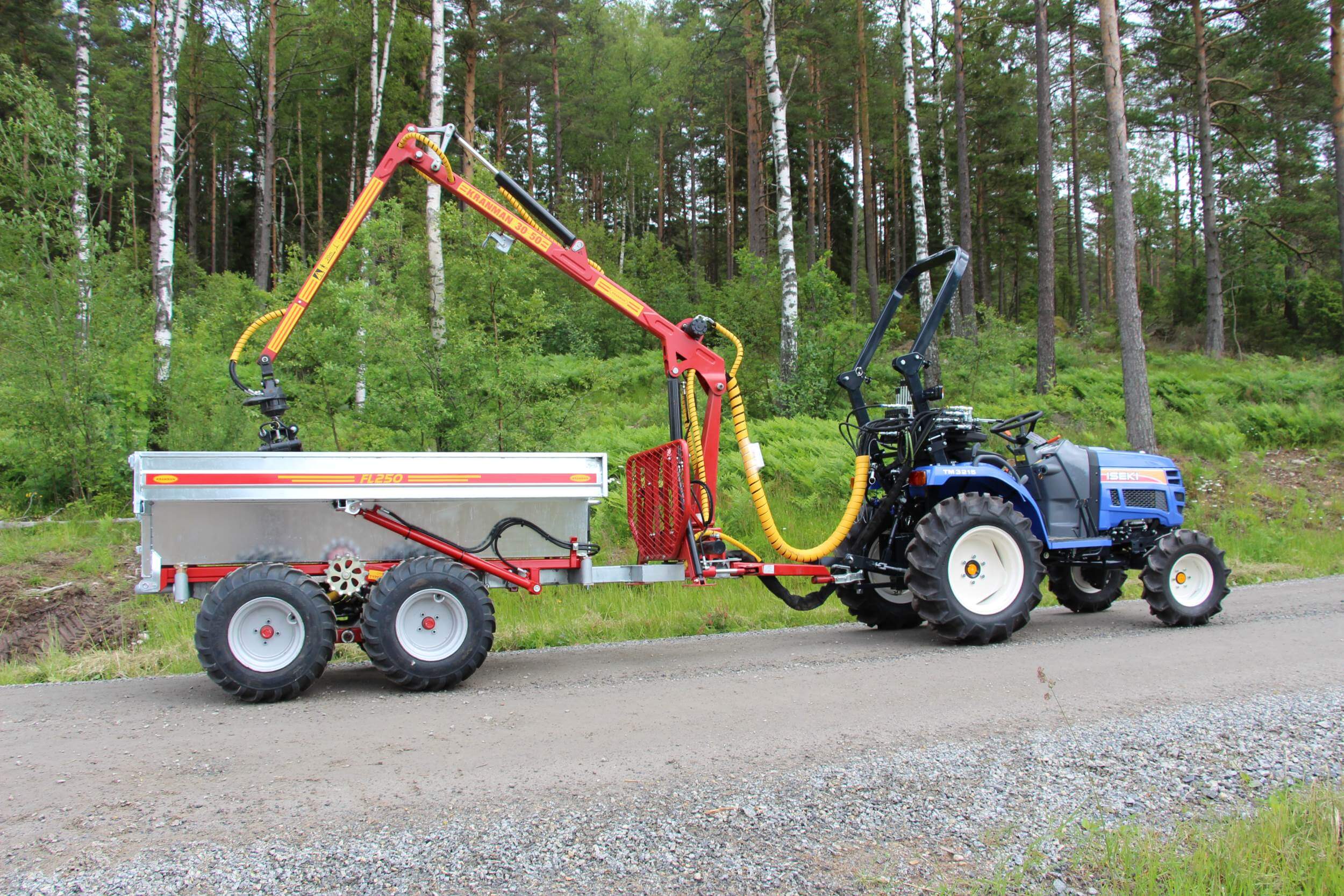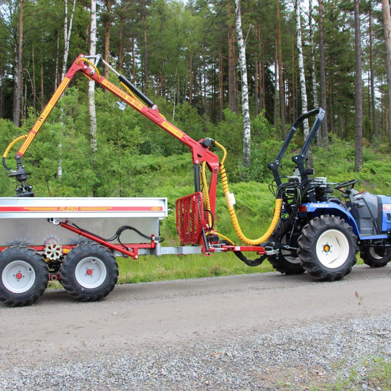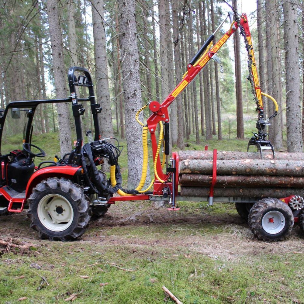Note! T1750 in tractor version does not include heads, hence the price difference from T1750 for ATVs. 3-lever valve package for drive control is included in the T1750 grapple loader trailer.