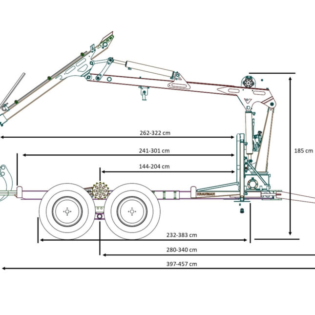 The new forwarder crane Kranman KX30 Pro Series replaces the Kranman K30-60. The KX30 has new geometry which makes it smoother, thicker cylinders which makes it stronger and longer extension which increases the range. The new A-frame has thicker, stronger support legs.