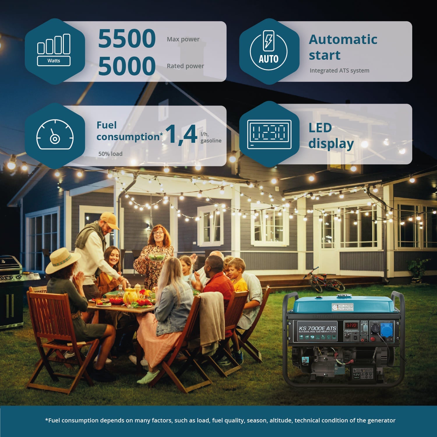 Könner & Söhnen mootoritel on lihtne käivitamine ja madal vibratsioon. KS 7000 bensiinigeneraatorite valik on varustatud usaldusväärse 1-silindrilise 13 hj mootoriga.