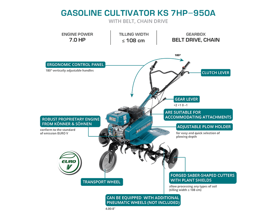 Kõik ühendused ja kinnitusdetailid on täiuslikult läbi mõeldud, projekteeritud ohutusvaruga pikaajaliseks ja mugavaks kultivaatori kasutamiseks. Need mudelid on varustatud täiendava kaitsekraaniga, et vältida põletusi.