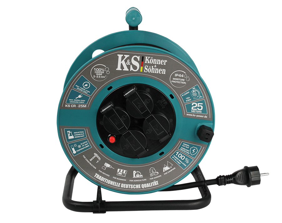Rullil oleva pikendusjuhtme kaabli pikkus on 25 meetrit ja see sobib nelja elektriseadme kaugühenduseks samaaegselt. Seda saab kasutada ehitus- ja remonditöödel, põllumajandustööstuses, tehastes ja ladudes. On usaldusväärne abimees telkimisel ja maal.