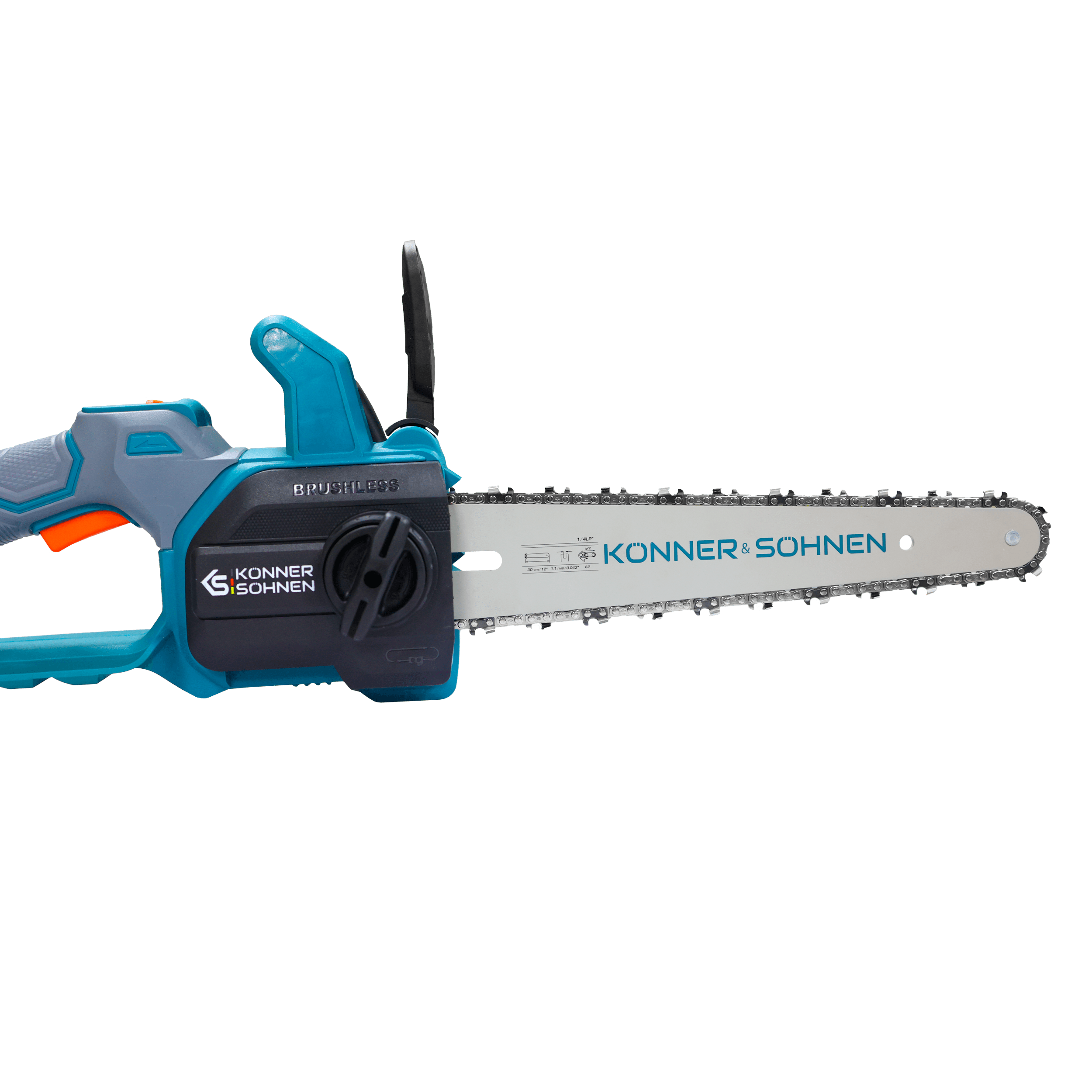 12-inch guide bar and 10 m/s chain speed – ensures precise cuts and fast operation, making the saw versatile for various tasks.Brushless motor – guarantees high performance and reliability for many years.Compact design and lightweight – provides comfortable handling and easy control, enabling operation with just one hand, especially in narrow or hard-to-reach places. Tool-free chain tensioning mechanism – enables quick adjustment or replacement of the chain right on-site, without screwdrivers or wrenches. Automatic chain lubrication – maintains constant lubrication during operation, reducing wear and extending the lifespan of the cutting components (chain and guide bar).