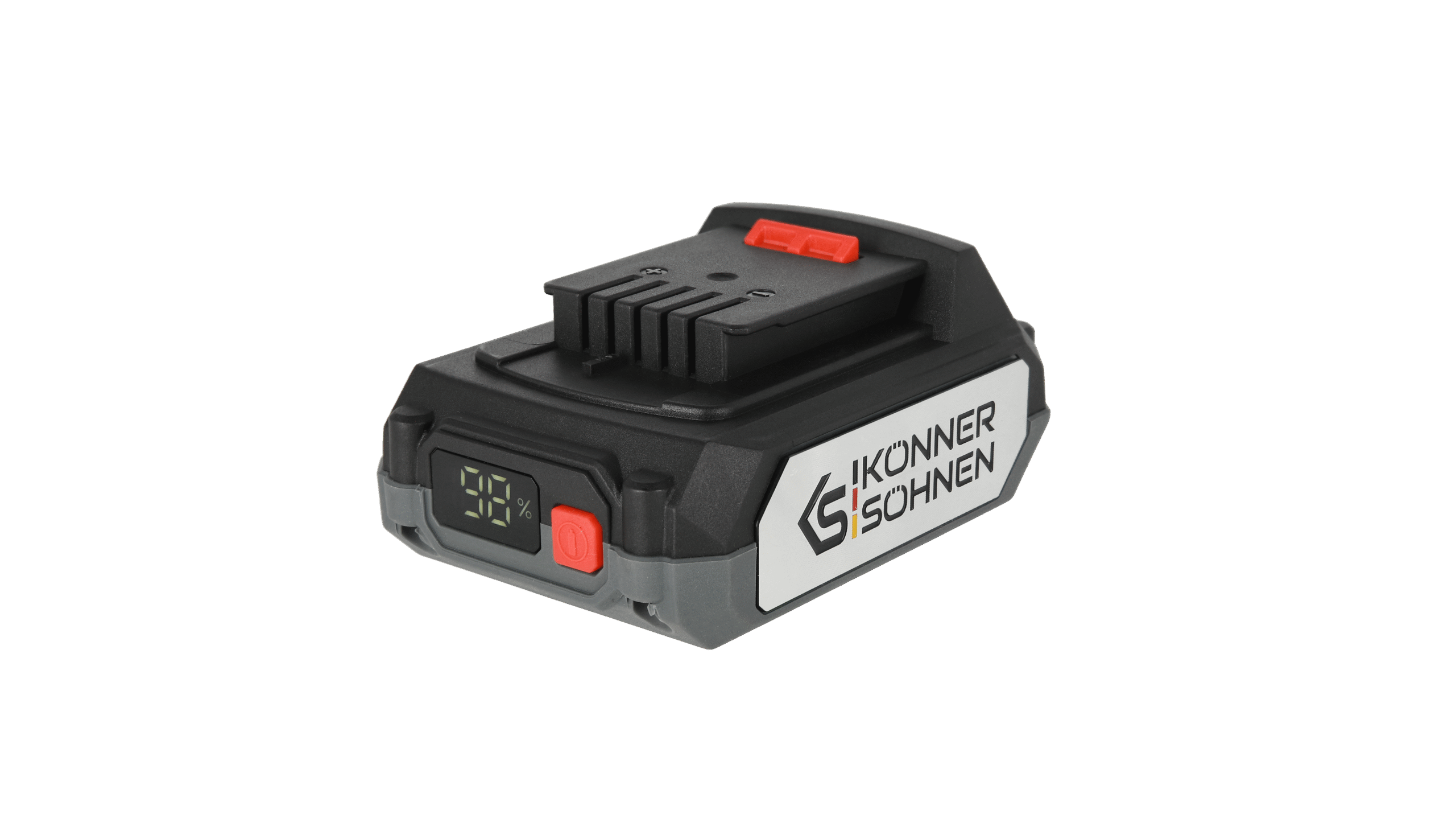 The Könner & Söhnen® 20V Lithium-Akku passt zu allen Gartengeräten der Könner & Söhnen® Einheitsakku-Systemserie! You can also save considerable money and time by using a battery with various devices! Modern Lithium-Ion batteries from Könner & Söhnen® are very reliable and durable. Ihre Lebensada ist dreimal so lang wie die von Blei-Säure-Batterien. Sie sind leicht und compact, haben jedoch gleichzeitung eine hohe Batteriekapazität und sind über die gesamte Lebensadura wartungsfrei. In addition, you are equipped with the highest protection class and are equipped with a state-of-the-art device.