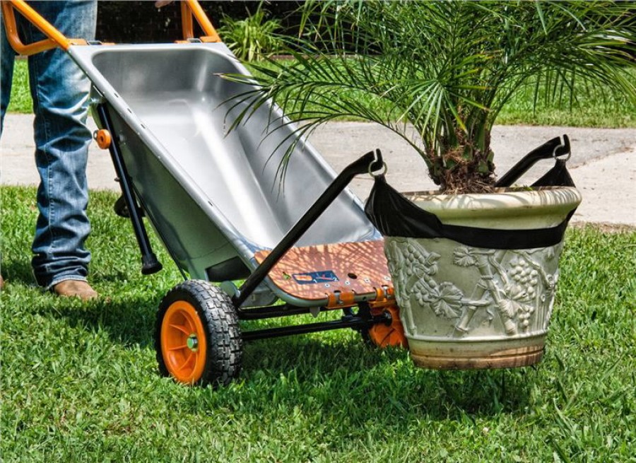 Selles kärus on ühendatud 8 funktsiooni, mis aitavad Teid rasketel aiatöödel. 2 suurt ratast ja hästi balansseeritud raskuskese muudavad 136kg koorma tunduma kui vaid 10kg. Paari lihtsa liigutusega muudate Te oma Aerocart aiakäru väga abivalmis raskete esemete vedajaks: suured potililled, rasked põllukivid või isegi autohaagise* liigutamine on nüüdsest lihtne, kui lapsemäng.