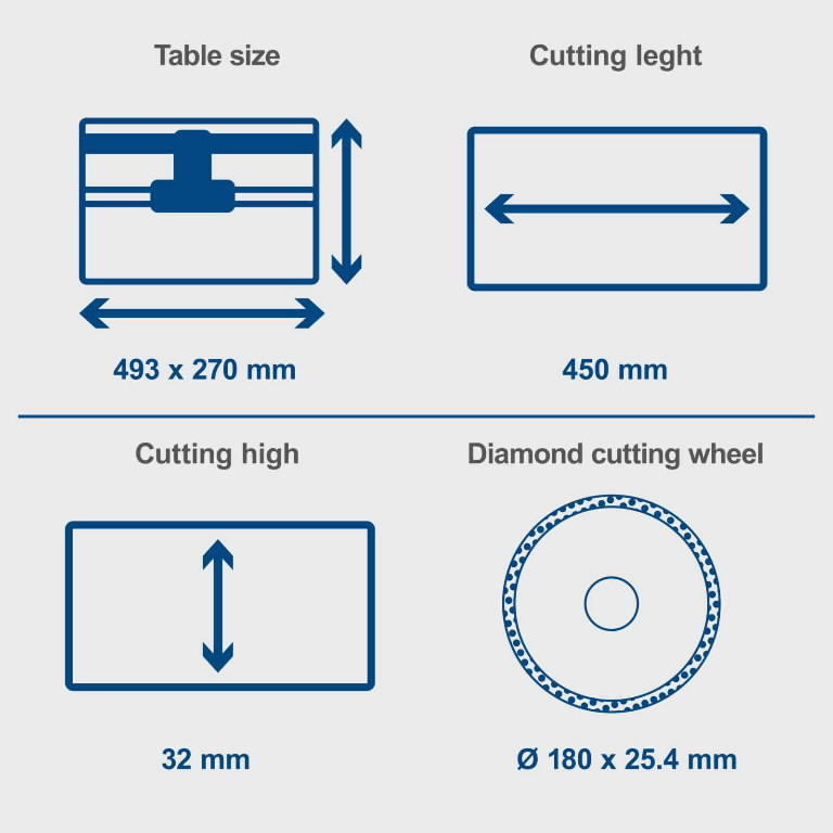 • Suurepärane lõikepikkus kuni 450 mm tänu liuglauale