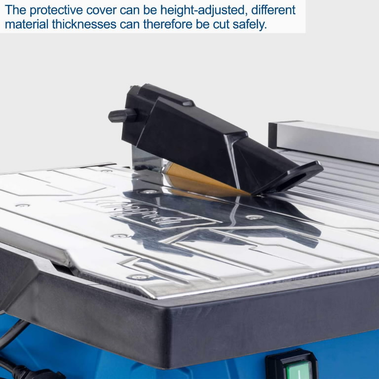 • Thanks to the protective cover that can be height-adjusted, materials of different thicknesses can be cut without problems